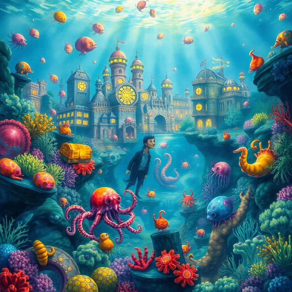 In 'Calamar's Chaos', players step into the quirky world of Calamar, a sentient calamari who finds himself embroiled in an underwater conspiracy. As Calamar, you traverse the vibrant ocean depths, navigating through peculiar underwater communities, engaging in dramatic negotiations with eccentric sea creatures, and uncovering hidden secrets of the coral kingdoms. Players make choices that lead to thrilling outcomes—will you ally with the rebellious Octopus Crew, negotiate peace between rival jellyfish gangs, or dive into treasure hunts? The game is filled with humor, mystery, and unexpected twists as you seek the means to save your home from a mysterious dark force threatening to consume the entire ocean. Your choices shape the underwater world, leading to multiple endings based on your alliances and actions.