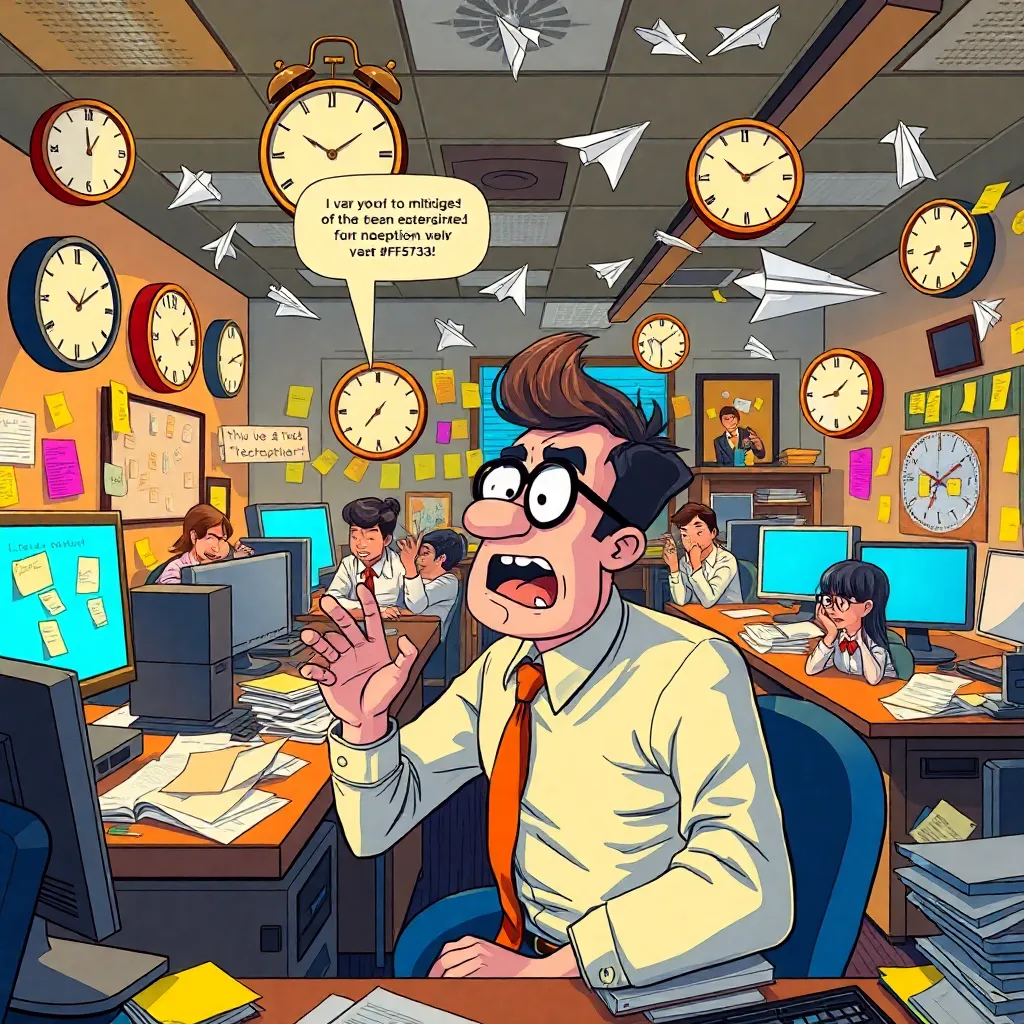 Step into the frantic life of a disorganized office worker, Max, who discovers that their company's shareable online calendar is mysteriously malfunctioning. As chaos reigns with meetings overlapping, forgotten deadlines, and absurd appointment requests, Max must navigate a zany series of interactions with quirky colleagues, absurd tasks, and unexpected events. Can you restore order to the calendar and save your job in the process, or will you fall into the abyss of perpetual disarray? Your choices direct the course of this humorous, dramatic tale!