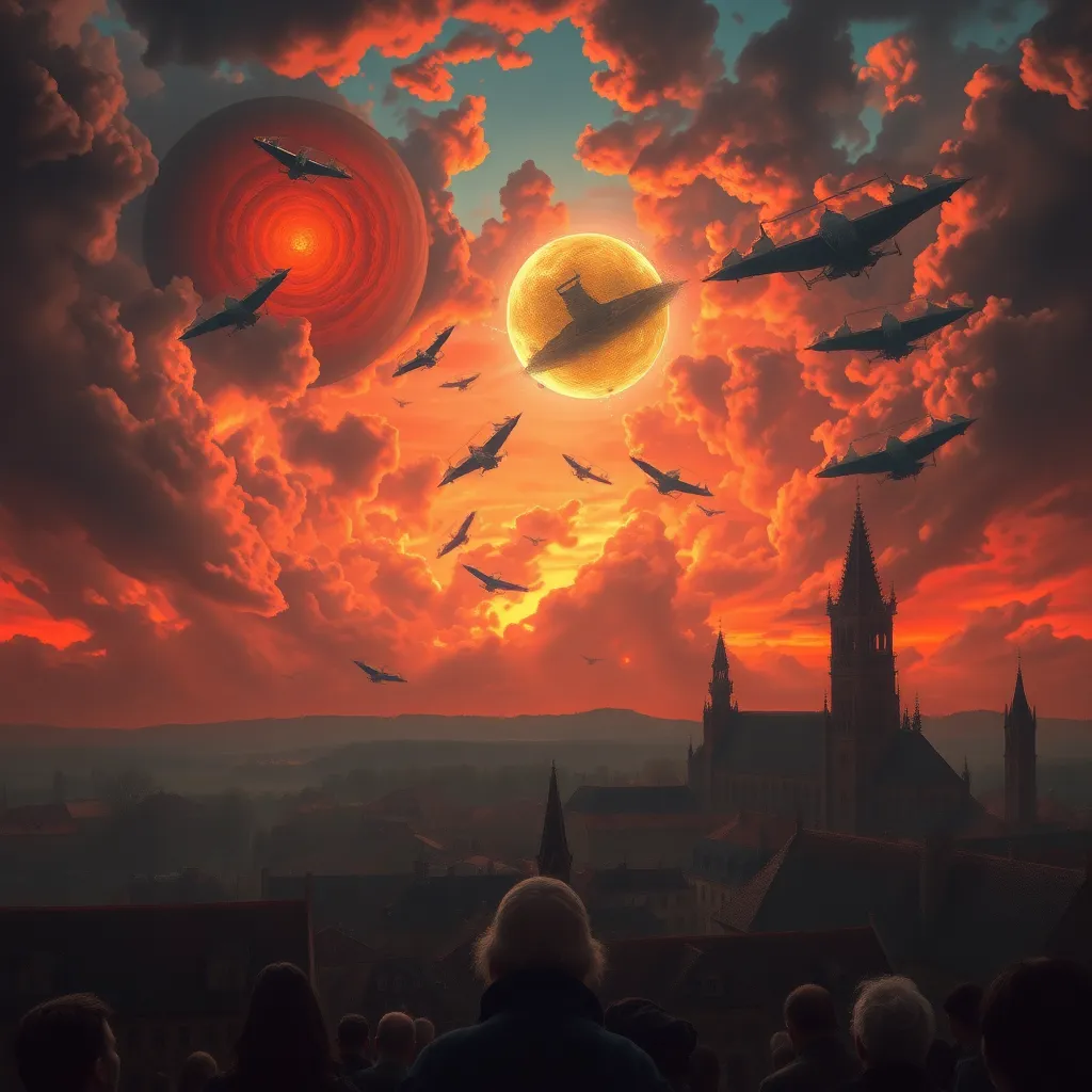 In 'Celestial Dread: Nuremberg's Heavens', you take on the role of a curious townsfolk witness during the fateful dawn of April 14th, 1561. As bizarre celestial phenomena unfold above Nuremberg—from massive aerial battles to the haunting figures of mysterious crafts—your decisions shape the outcome of an event that will be scrutinized for centuries to come. Engage with historical figures, unravel mysteries, and navigate the tumult of fear, wonder, and superstition. Will you interpret these signs as divine warnings, or will you embrace a more skeptical view? Your choices lead to multiple endings, from tragic to triumphant.