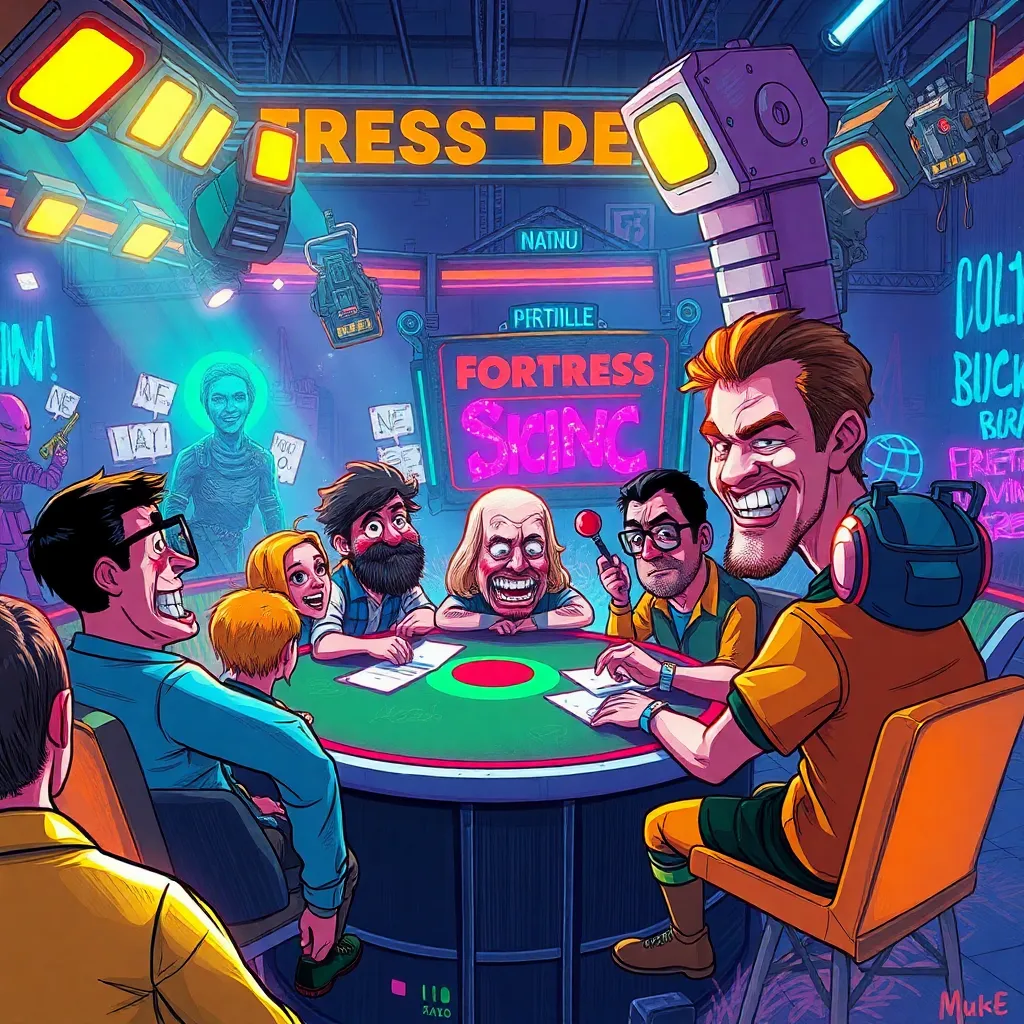 In 'Fortress Delirium', you find yourself in the middle of a chaotic virtual battle where the rules of survival have been warped into a bizarre game show. Instead of fighting to survive against enemies, you must navigate emotional challenges and absurd social dynamics with other players who each have their own comedic quirks. From forming alliances with a conspiracy theorist convinced the game is a coded message to negotiating with a wannabe influencer desperate to go viral, your choices will lead to unexpected outcomes. Meanwhile, the environment is constantly shifting, throwing random comedic obstacles in your path as the game host, a digital AI with a flair for the dramatic, dangles the ultimate prize: the chance to rewrite the game’s very rules. Will you exploit your newfound friendships, or betray them at the last moment? Your fate lies in the absurdity of this Fortnite-inspired world where every decision is a blend of strategy and pure madness.