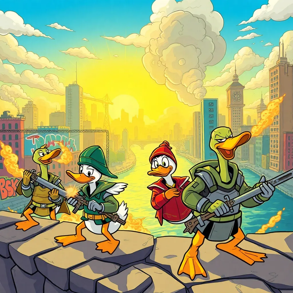 In a world where ducks have taken up arms to fight against pollution and corporate greed, you play as Quackers McDuck, a sassy waterfowl armed to the beak with an arsenal of quirky weapons. Navigate through urban landscapes, engage in hilarious firefights with rival duck factions, and make choices that affect your flock's future. Will you become the champion of the pond or just another feather in the wind? The fate of the wetland rests on your quacky decisions!