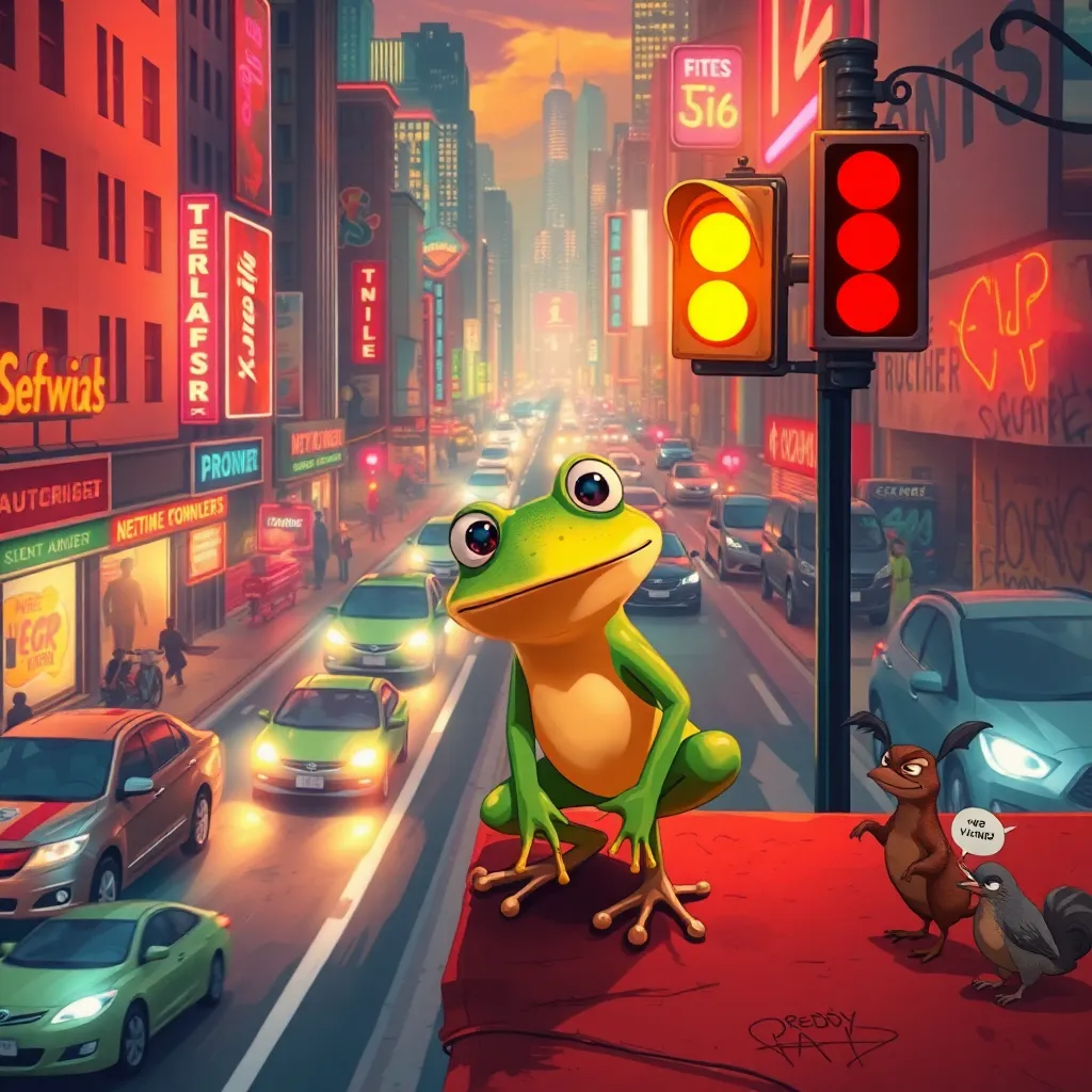 In 'Frogger's Last Hop', you play as Freddie, an ambitious amphibian who dreams of crossing the most treacherous road in the city to reach the legendary hidden pond filled with glittering lily pads. As you navigate through chaotic traffic, you'll encounter quirky characters including a neurotic squirrel, wisecracking pigeons, and a traffic light that has seen better days. Each decision you make influences Freddie's fate as he hops through nail-biting situations filled with witty dialogue and unexpected obstacles. Will you make it to the pond of your dreams, or will you become roadkill? Choose wisely, for life and death depend on your judgment!