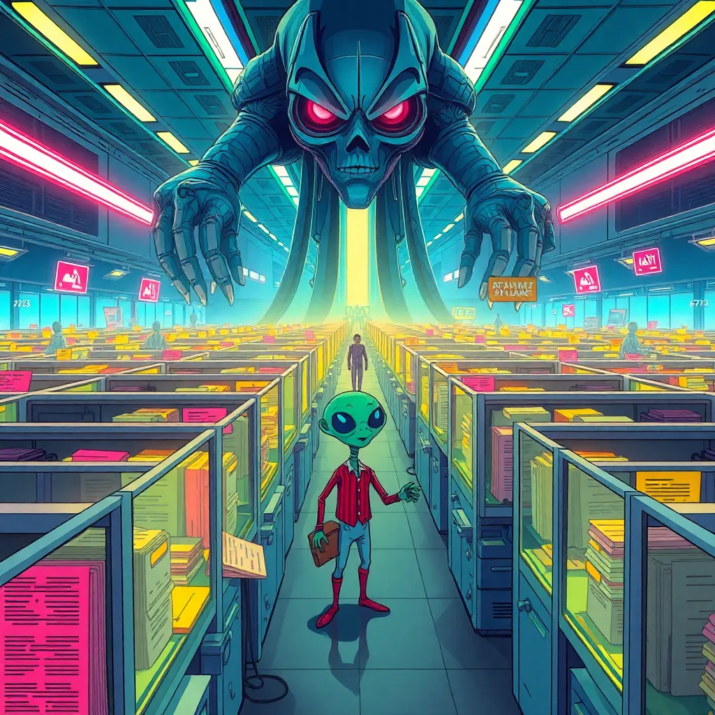 In a universe ruled by a mind-numbingly convoluted bureaucracy, you play as Zeta Quark, a junior galactic paper pusher. Your mission: to navigate through an interstellar morass of absurd forms, procedures, and harassment by overzealous automated systems. With each challenge, you will confront mischievous aliens, bureaucratic overlords, and mind-boggling rules, all while trying to get your paperwork approved. Make choices to either comply, rebel, or use absurd humor to escape the inefficiencies of your workplace and deliver the universe’s most important documents (or make your own chaos). With over a hundred branching paths, will you rise to epic proportions or sink into the bureaucratic abyss?