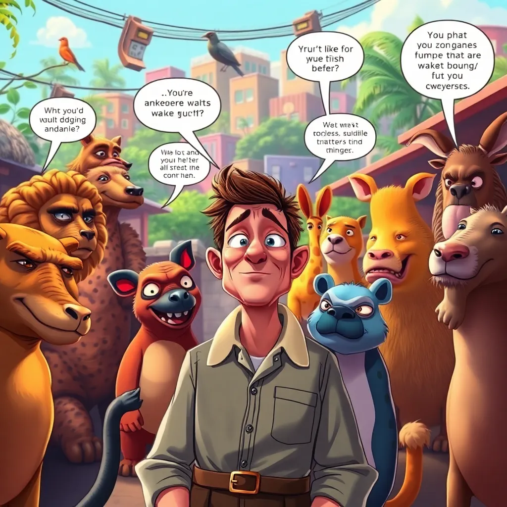 In 'Hanging by a Thread', players assume the role of a disillusioned zookeeper who wakes up to find their entire wildlife park mysteriously inhabited by a variety of talking animals. As rumors of bizarre happenings in the zoo begin to swirl, players must interact with quirky animal characters, solve riddles, and piece together the clues that reveal the truth behind the zany event. Each animal has its own unique personality and backstory, leading to humorous dialogue and unexpected alliances. With a colorful cast of characters, the game embraces dark humor as players navigate the tricky challenges in an urban setting where the stakes keep getting higher. Can they save the park from impending doom and uncover who or what is responsible for this madness?