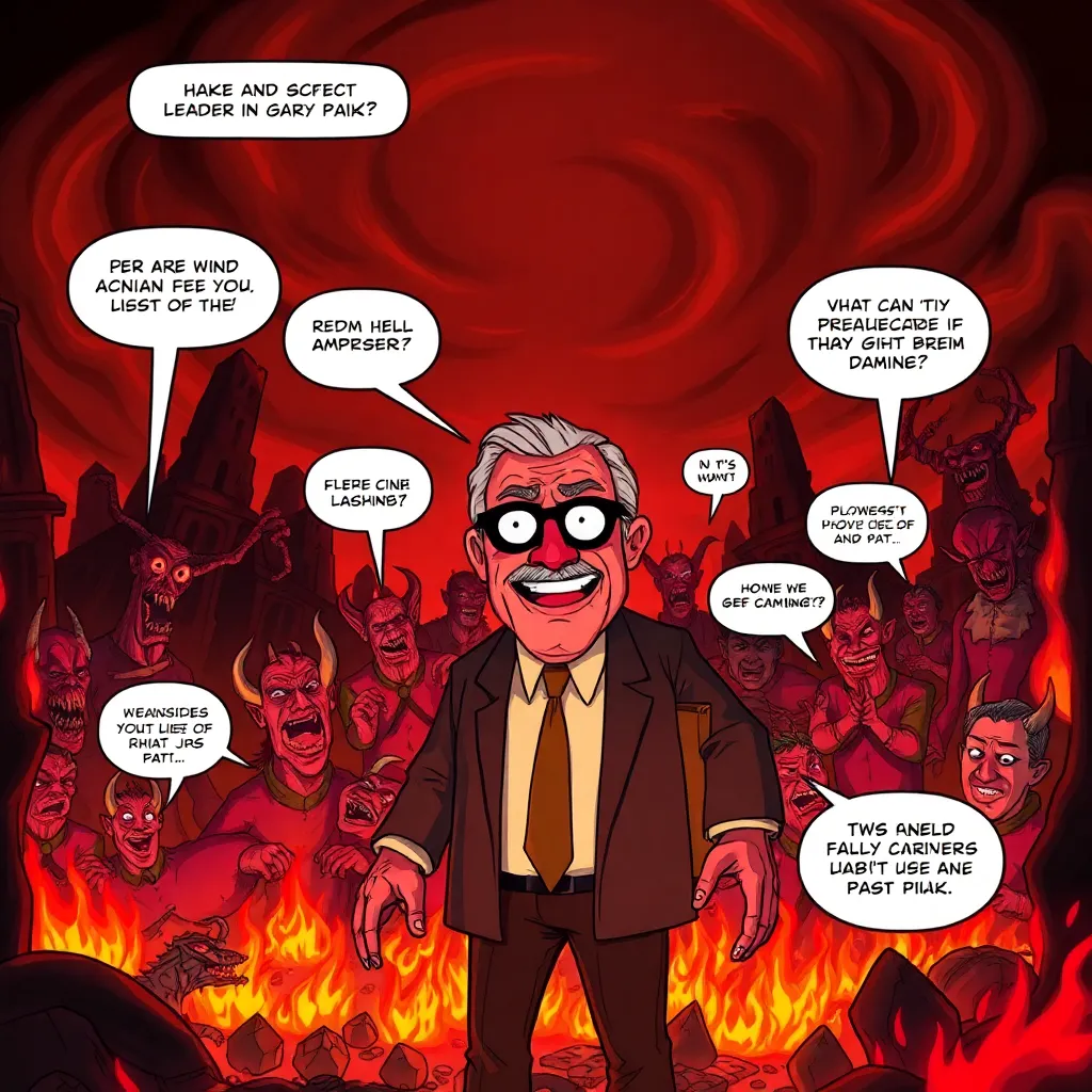 In this interactive text-based game, you step into the misfit shoes of Gary Miller, the disgraced ex-leader of the Eternal Order of the Second Death. After being cast into Hell by the overzealous Priest John Ward, you find yourself grappling with your dark past, navigating the chaos of the underworld, and plotting your revenge. Along the way, you'll encounter an array of quirky demons, eccentric spirits, and the weird bureaucracy of Hell itself. Your choices dictate whether you unleash chaos, find redemption, or even form an unlikely alliance with other creatures of the dark. Humor, drama, and a touch of madness await as you craft your own story about vengeance, identity, and the repercussions of a life of villainy.