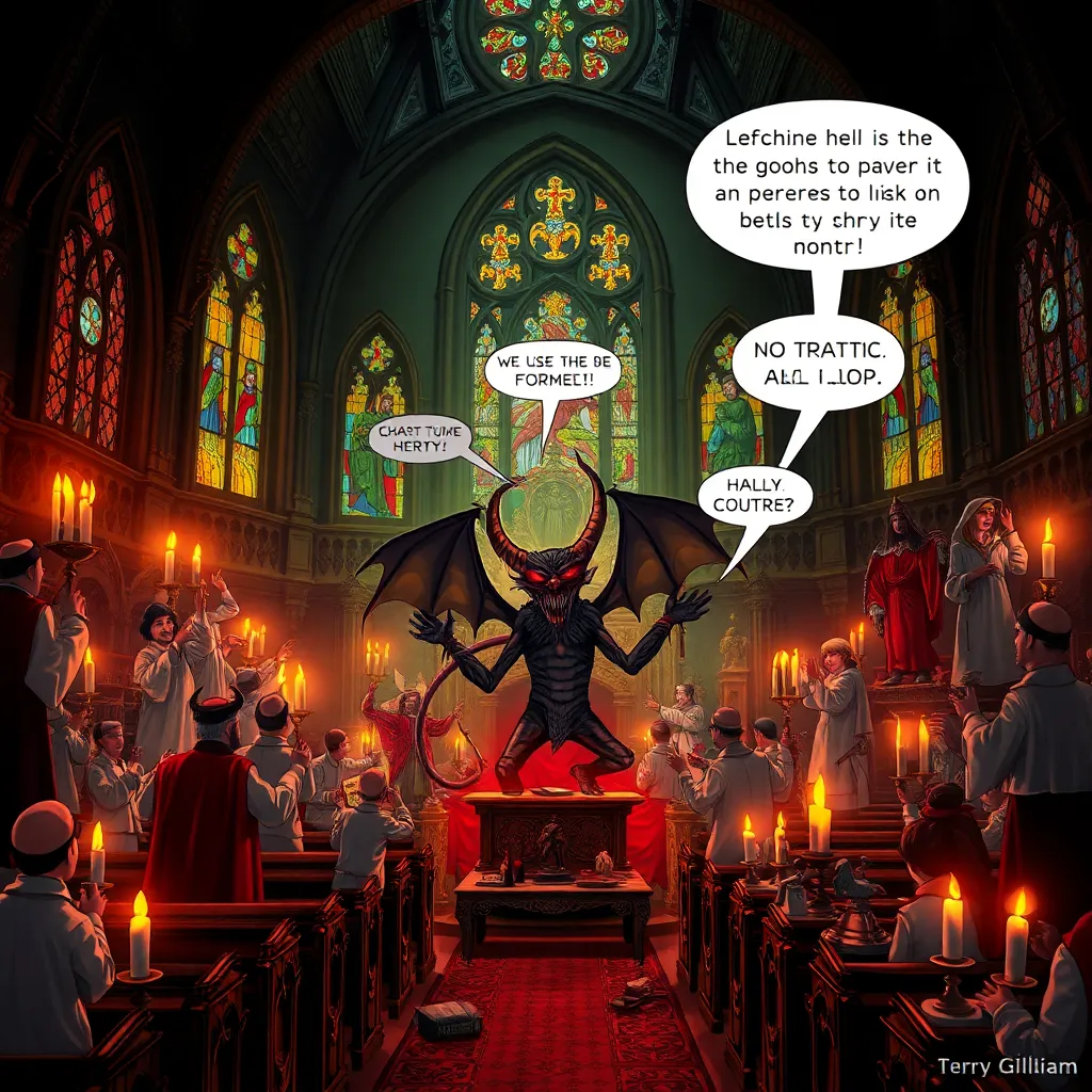 In 'Hell's Sanctuary', you assume the role of a snarky demon who finds itself trapped in a church after a botched summoning ritual by a group of overly curious priests. With the church shielding you from powers of possession and dimensional travel, you now have to navigate this bewildering environment filled with fragile religious artifacts, overly enthusiastic priests, and bizarre restrictions on your abilities. Each interaction offers a mix of hilarity and drama as you concoct plans to outwit the priests, engage in sarcastic dialogues, and reveal the absurdities of both the holy and unholy. Will you manage to escape this comically sanctified purgatory or will you be seduced by the hilarity of it all?