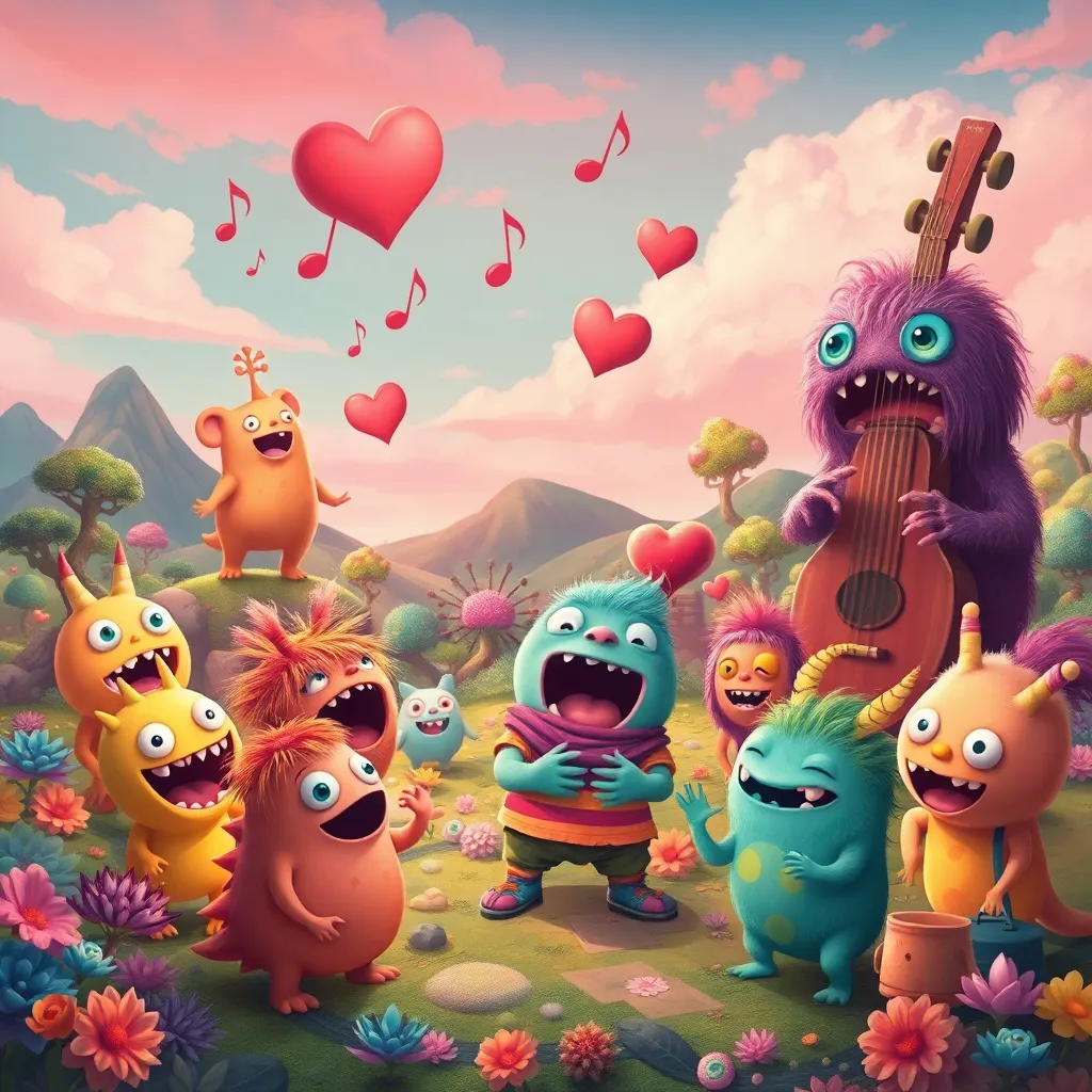 In 'Monster Mingle Mania', you step into the shoes of a quirky character living in a vibrant world inhabited by singing monsters. As a talent scout for a renowned Monster Music Festival, your goal is to connect with a variety of charming monsters, each with their own unique personalities and musical styles. Engage in heartfelt conversations, go on playful dates, and help them discover their vocal potential while navigating humorous and dramatic love stories. Will you find the perfect duet partner or create harmonic chaos? It's up to you!