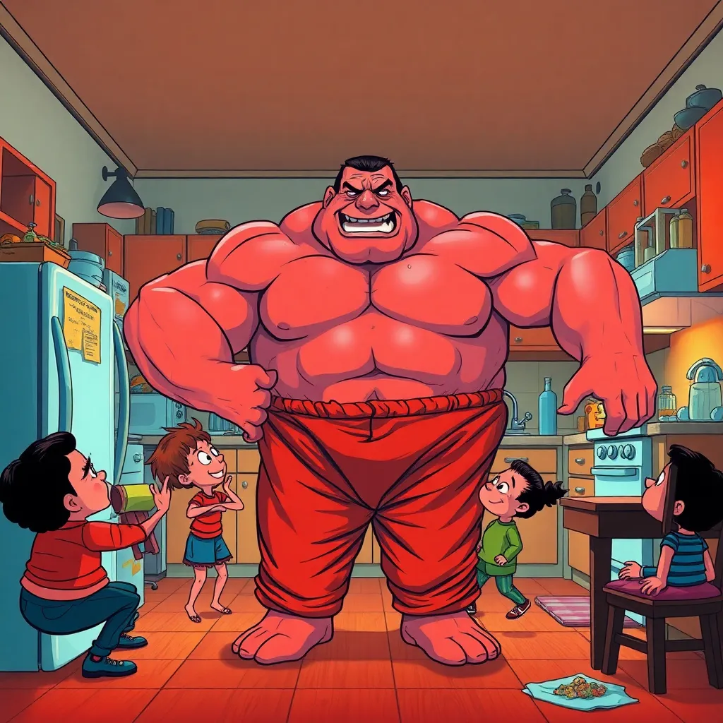 In 'Musclebound Madness', you play as YEXPZN, an impossibly large and oddly charming father, navigating the absurdities of fatherhood and unexpected transformations. Your 18-year-old son, fueled by misguided love and a dubious vision of masculinity, has secretly introduced a miracle growth serum into your food and drink. As you start to notice your increasingly exaggerated physique and strange occurrences, you must balance your newfound muscle power with the chaos it brings to family life, relationships, and your own sense of self. Will you embrace the 'god-like' figure you're becoming, or will you fight to retain the dad you’ve always been? All the while, you’ll make outrageous choices, meet eccentric characters, and navigate the hilarious consequences of your son’s misguided quest for greatness.