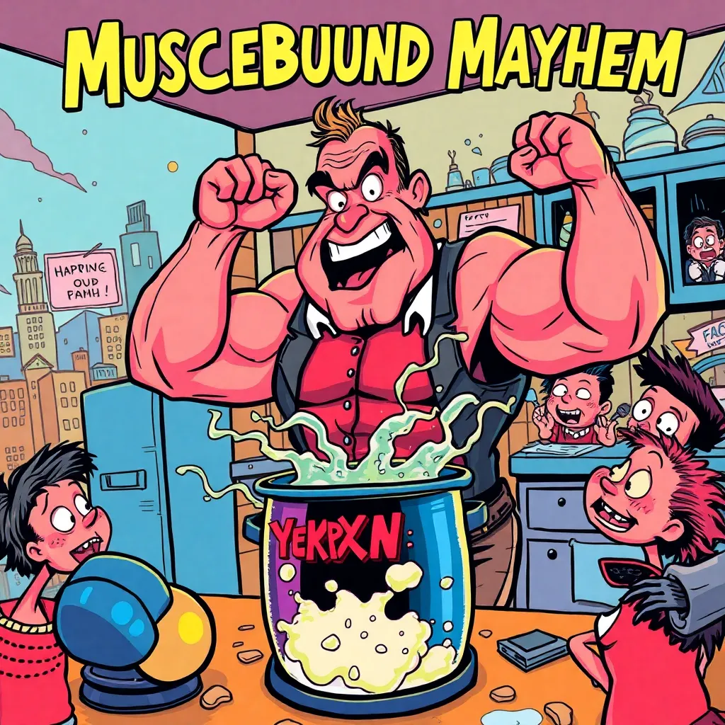 In 'Musclebound Mayhem', you play as YEXPZN, an eccentric father with an outrageous physique and an even more outlandish problem. Your son, fueled by his admiration for your massive stature, secretly concocts a muscle-growing serum and adds it to your meals. Unbeknownst to you, each bite sends you on a wildly comedic journey of unexpected transformations—sharp wit and buffed-up bravery are necessary as you navigate through a world that now sees you as a deity of strength. With your newfound powers, you’ll face ridiculous challenges, absurd confrontations, and laughable misunderstandings as you attempt to balance fatherhood with the unforeseen chaos of your son’s ambitious endeavors. Explore relationships and identity in a hilariously exaggerated tale of masculinity gone wild!