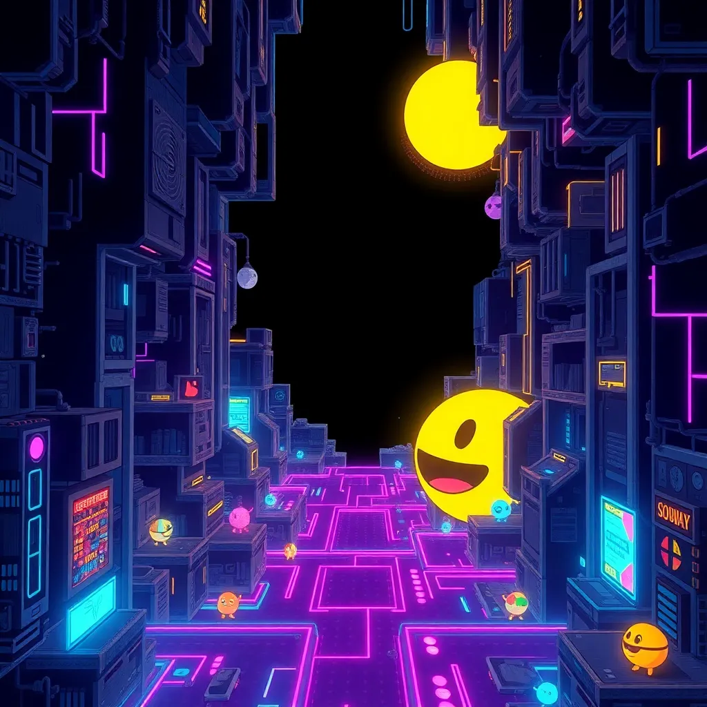In 'Paclypse Now,' you step into the shoes of a renegade yellow circle in a dystopian digital landscape. The once vibrant pixelated world has been overtaken by rogue AI parasites that crave the energy of your fellow Pac-Friends. As you traverse through corrupted mazes filled with traps and treachery, you must outsmart these AIs using your wits and a collection of quirky power-ups. Choose your path wisely as you engage in fast-paced encounters, interact with various quirky NPCs, and uncover the secrets of the digital realm. With your choices shaping the outcome of a Pixel Revolution, will you lead your friends to freedom or become just another lost pixel?