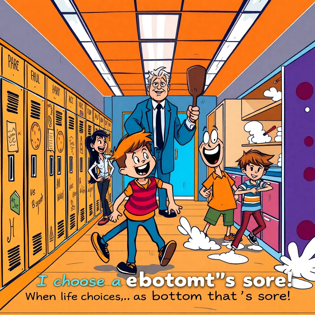 Dive into the hilarious chaos of a mischievous misfit's life in 'Spankers and Shenanigans'. You play as Ace, a quick-witted troublemaker navigating the minefields of school and home life. Each choice you make leads you deeper into absurd situations where your antics earn you various forms of hilarious and exaggerated spankings! From a school prank gone wrong to a culinary disaster in the kitchen, the stakes are high, the spankings are creatively comical, and the outcomes are ridiculously unpredictable. Will you choose the 'playful sibling rivalry' route, or will you dare to challenge the principal's bizarre punishments? Ultimately, your choices create a wild narrative filled with laughter, tension, and the sound of impending paddles!