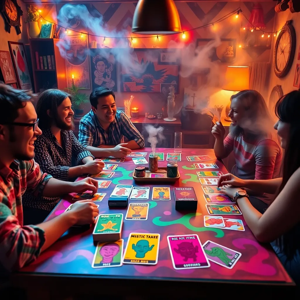 Dive into the whimsical world of 'Toke & Tell', where each round is a fresh adventure! In this interactive card game, players draw from a deck of outrageous and esoteric strains, each with unique effects, stories, and challenges. As the game progresses, players compete to see who can creatively interpret their drawn cards through funny anecdotes, wild storytelling, and hilarious charades, ultimately leading to a shared smoke session that dictates which strain you’ll partake in next. The catch? You’ve gotta outwit your friends with the most outrageous tales or risk smoking the dreaded ‘Mystic Mud’, a concoction that may have unanticipated side effects!