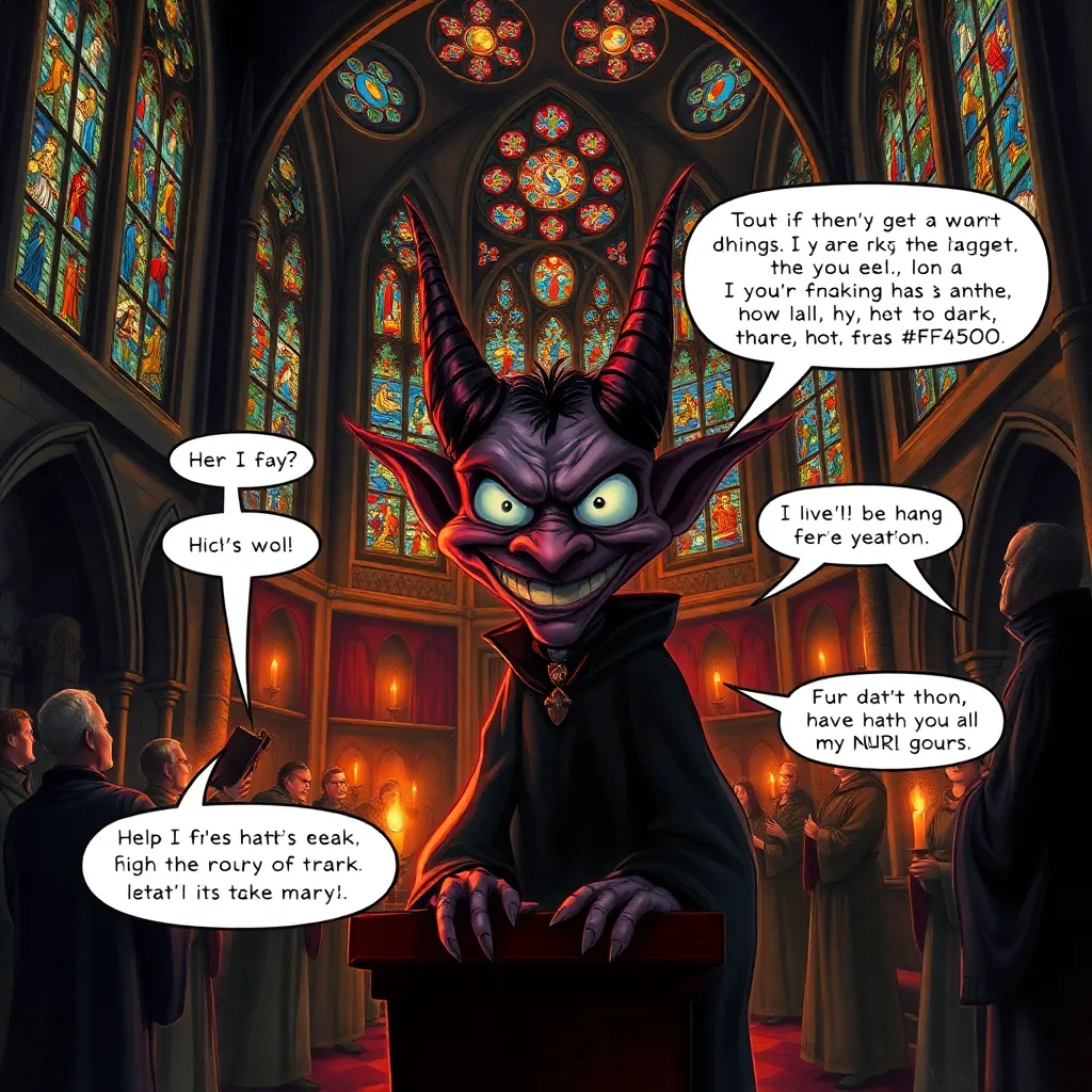 In 'Unholy Banter', you play as a mischievous demon accidentally trapped in a church thanks to a band of daring priests. As they poke, prod, and question your existence, your goal is to entertain and outsmart them while trying to devise a plan to escape this perplexing predicament. Navigate through witty dialogue choices, throw in some dark humor, and manipulate the priests’ curiosity to your advantage—while ensuring you don’t expose your dark side too much. Can you confuse, amuse, and maybe even befriend these religious zealots without losing your demonic edge?