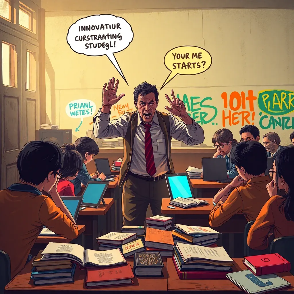In 'Zombie Classroom: The Educator's Lament', players step into the role of a beleaguered teacher navigating the chaotic landscape of modern education. The classroom feels like a battlefield, with students resembling zombies addicted to their screens, displaying apathy toward learning. Your mission is to engage these 'zombie' students in meaningful conversations, devise innovative teaching strategies, and overcome the tech-driven barriers that inhibit their cognitive growth. As you progress, the narrative unfolds with your choices shaping the fates of both students and educational methods. Work through dramatic moments, comedic encounters, and crucial discussions about the role of technology in learning. Can you reclaim the minds of your students and spark their curiosity before it’s too late?